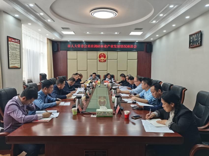 在调研座谈会上,桂阳县人民政府副县长周平汇报了全县林业产业发展情况,县林业局等部门作了补充汇报,企业代表作了交流发言。
