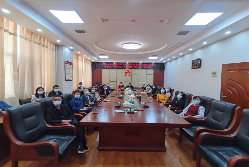 10月16日上午10时,中国共产党第二十次全国代表大会在北京人民大会堂隆重开幕,习近平总书记代表十九届中央委员会向大会作报告。为进一步引导全体干部职工统一思想、凝聚共识,深入学习领会、宣传贯彻党的二十大精神,县人大组织机关科级及科级以下干部职工集中观看开幕式直播实况,第一时间学习领会大会精神。县处级领导在县演艺中心参加集中收听收看活动。