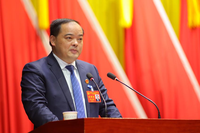 在热烈的掌声中,县委副书记、县长李志强向大会作政府工作报告。