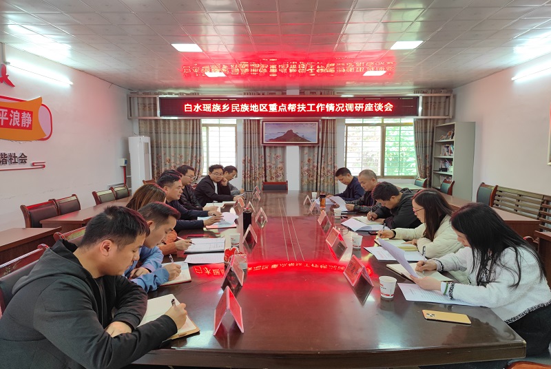 座谈会上,白水瑶族乡党委书记、乡长赵鹏军从基础设施建设、产业发展、社会事业发展等方面作了汇报,重点报告了白水瑶族乡在落实民族地区重点帮扶工作过程中存在的主要困难,并提出了下一步工作思路与工作计划。