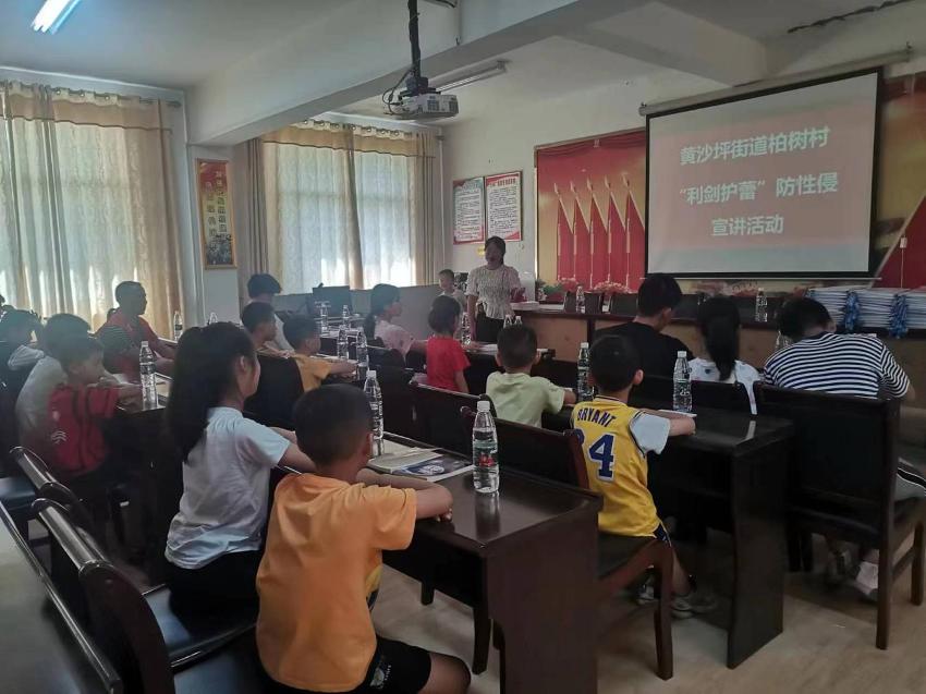 47月21日蒋淑珍在柏树村为孩子们讲如何防性侵,保护自己