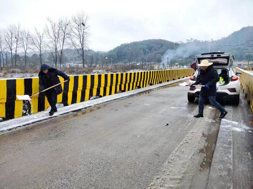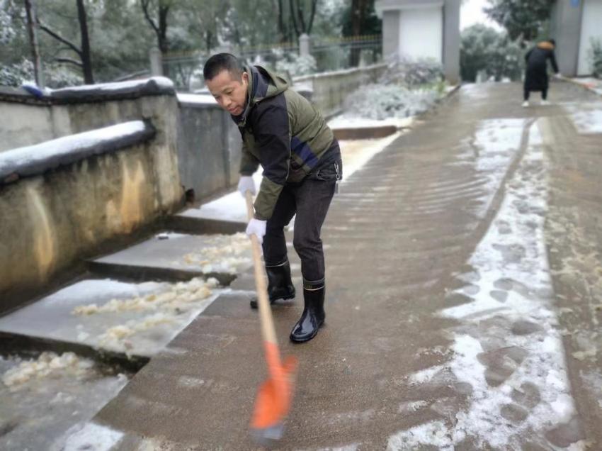 正和镇人大代表、党员和志愿者们自备扫雪工具,扫积雪、铲冰层、清杂物、除路障。低温雨雪冰冻天气丝毫没有挡住人大代表们清扫积雪的热情和决心,团结一致,维护村民出行安全。