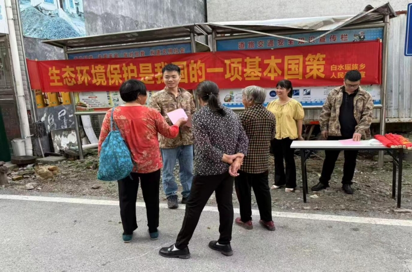 在活动现场,县人大代表周海燕热情地向过往群众发放环保宣传单,详细介绍了世界环境日的由来、意义以及“美丽中国我先行”主题的深刻内涵。结合白水瑶族乡的实际情况,向群众普及了日常生活中的环保知识,如节能减排、绿色出行等,引导群众积极参与到环境保护行动中来,从自身做起,从身边小事做起,共同建设美丽瑶乡。