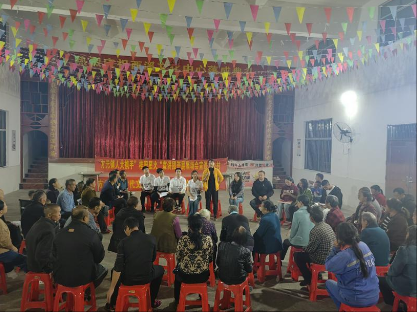 夜幕初垂,灯火可亲。为深入推进党的政策方针走进基层、贴近群众,切实增强群众对当前重点工作的知晓度与参与感,10月29日晚,方元镇人大联合“桂阳星火”宣讲团,利用晚间农闲时间,在谷田村大礼堂成功举办了一场“接地气”的屋场政策宣讲会。50余名村民踊跃参与,现场气氛热烈、互动频繁。